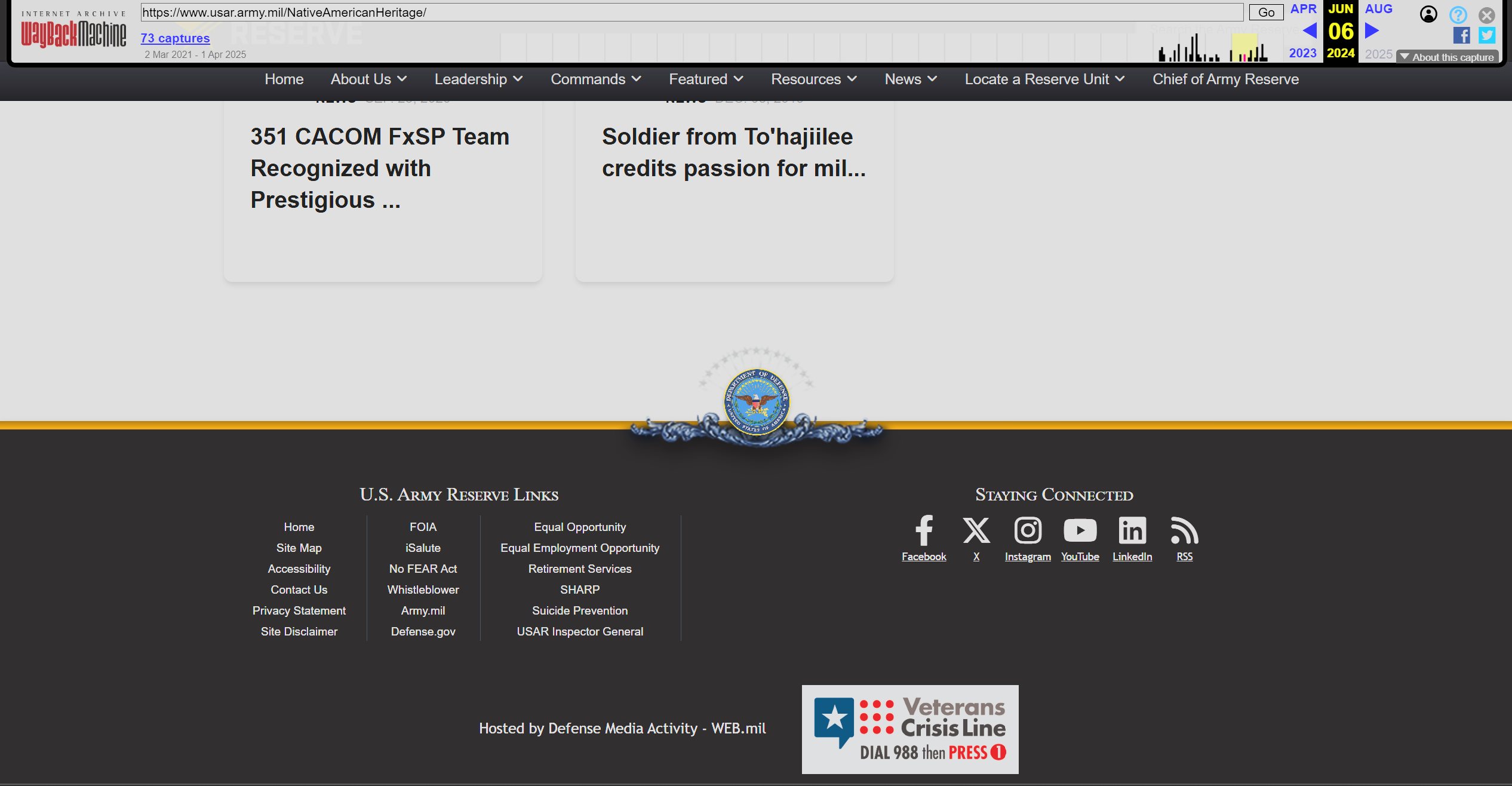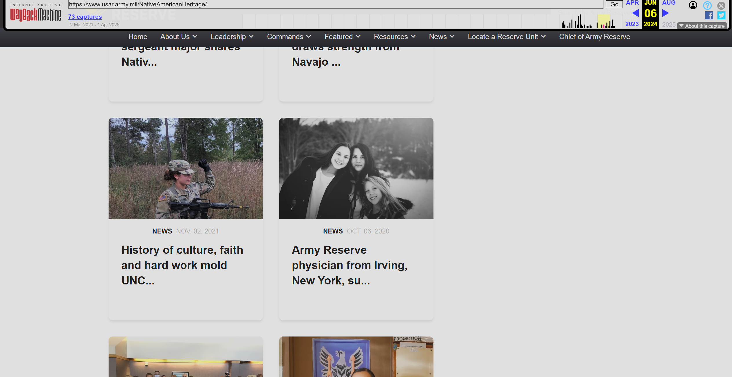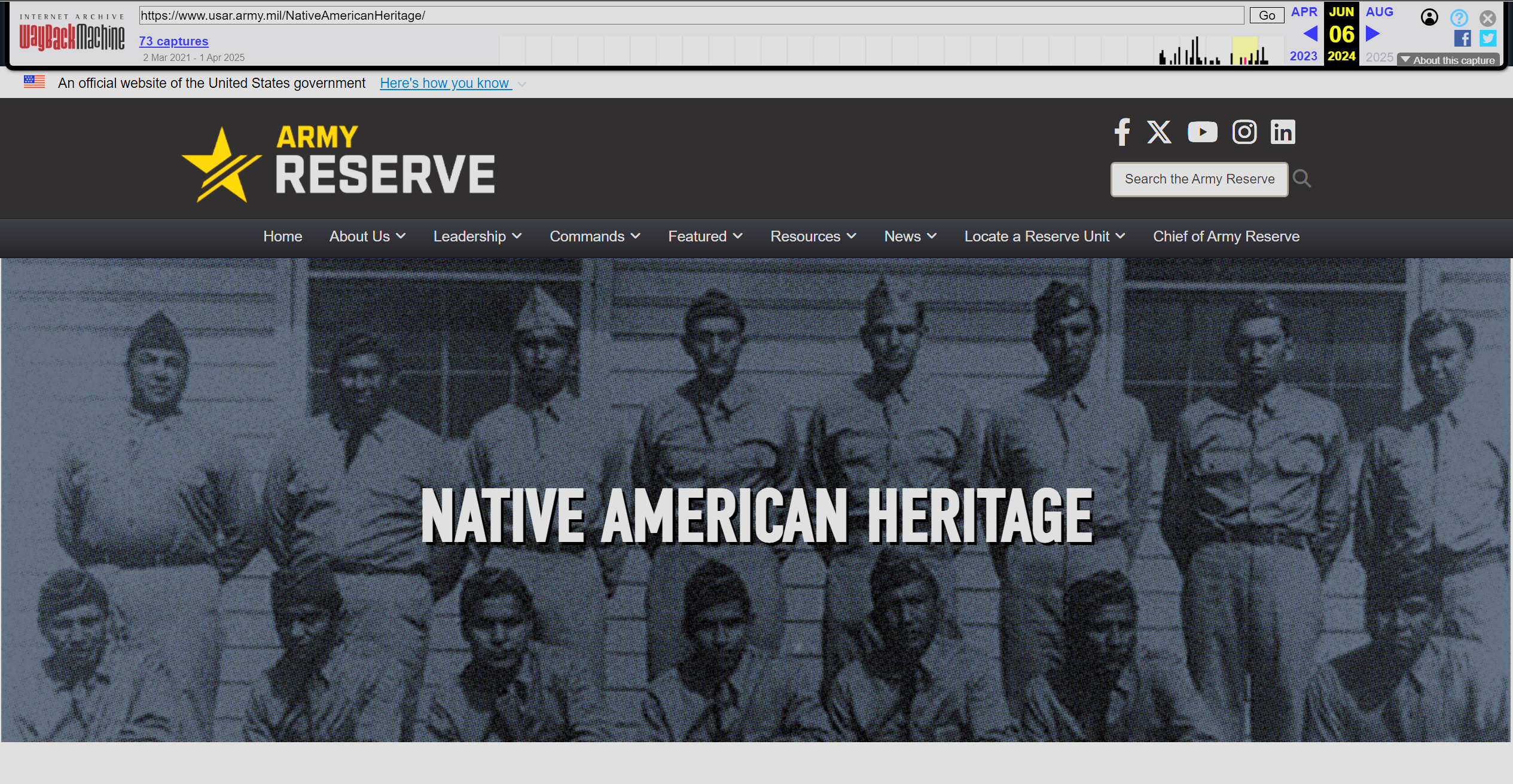 [2] Lacdan, Joseph. “Army Leader Cherishes Heritage, Honors Native American Contributions.” http://www.Army.Mil, U.S. Army, 19 Nov. 2021, https://web.archive.org/web/20250212083345/https://www.army.mil/article/252163/army_leader_cherishes_heritage_honors_native_american_contributions.